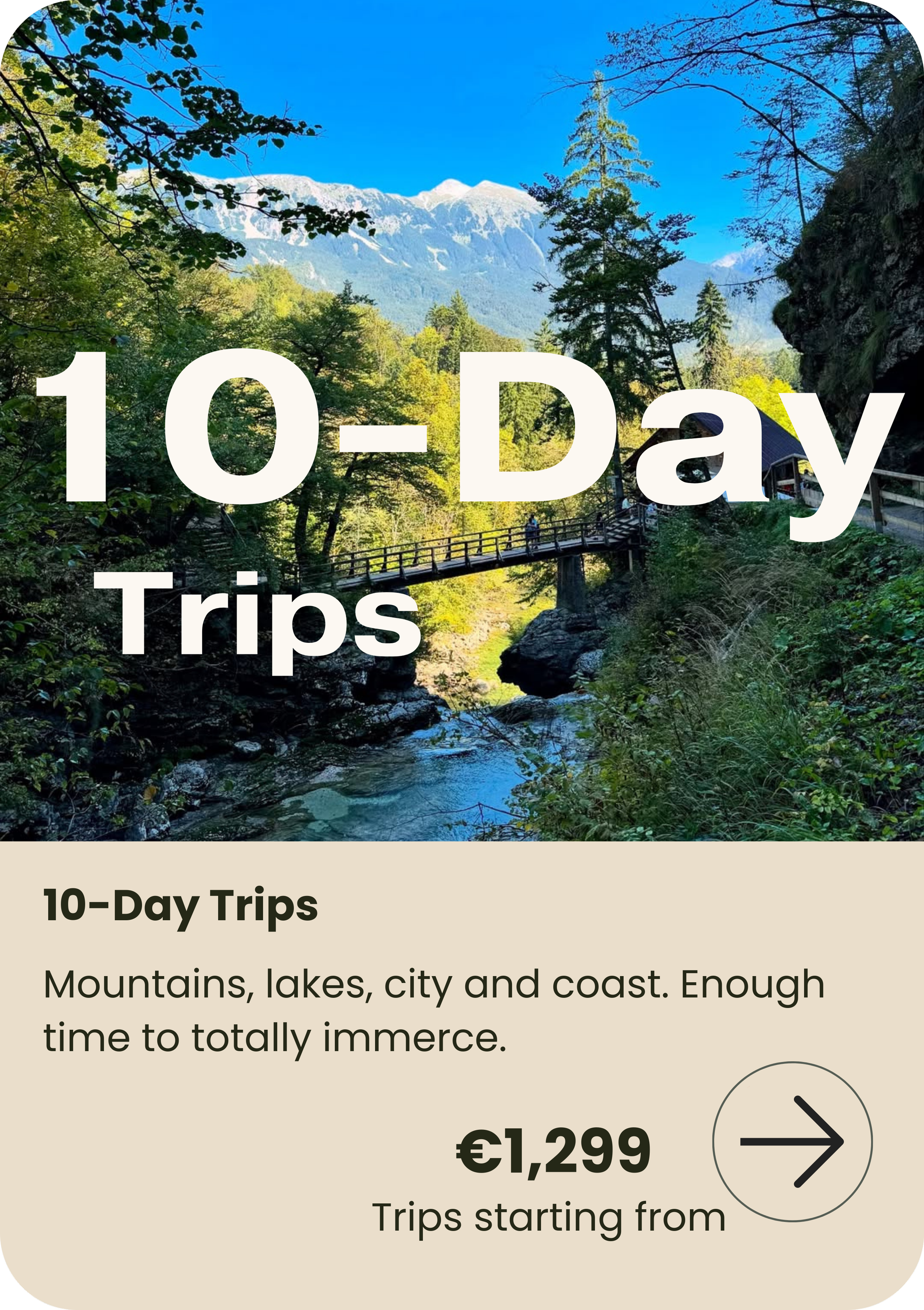 Choose from our trialed, tested and perfected 3, 7, or 10 day bundles. Or design your own holiday from scratch with our personalised option.